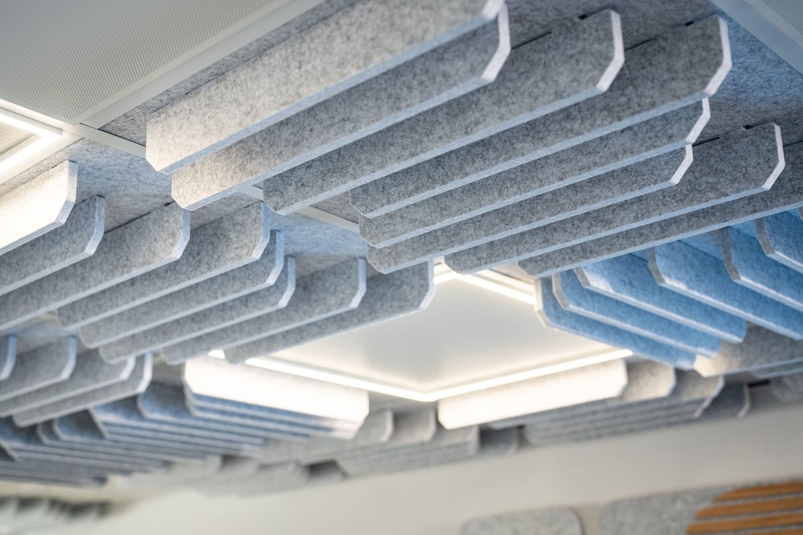 We were thrilled to support Gravity with products that complemented both their aesthetic and acoustic goals. Flott acoustic ceiling tiles were installed to absorb excess sound and create a feature overhead, within the office space. Their textured surface adds warmth and visual rhythm, helping the space feel balanced and cohesive while improving the overall acoustic comfort.