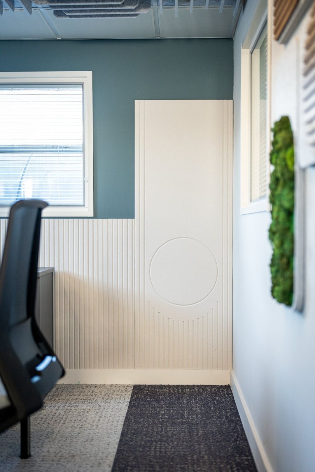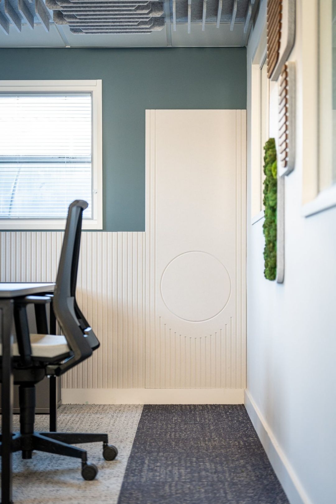 Alongside this, Öra rhythmic wall panels were used to bring a subtle flow and movement to the walls. Their design introduces depth and texture, reducing reverberation while adding a refined, contemporary finish. Together, these products help to define distinct zones within the office, allowing the sales team to stay energetic and collaborative, while the quieter team can focus without distraction.