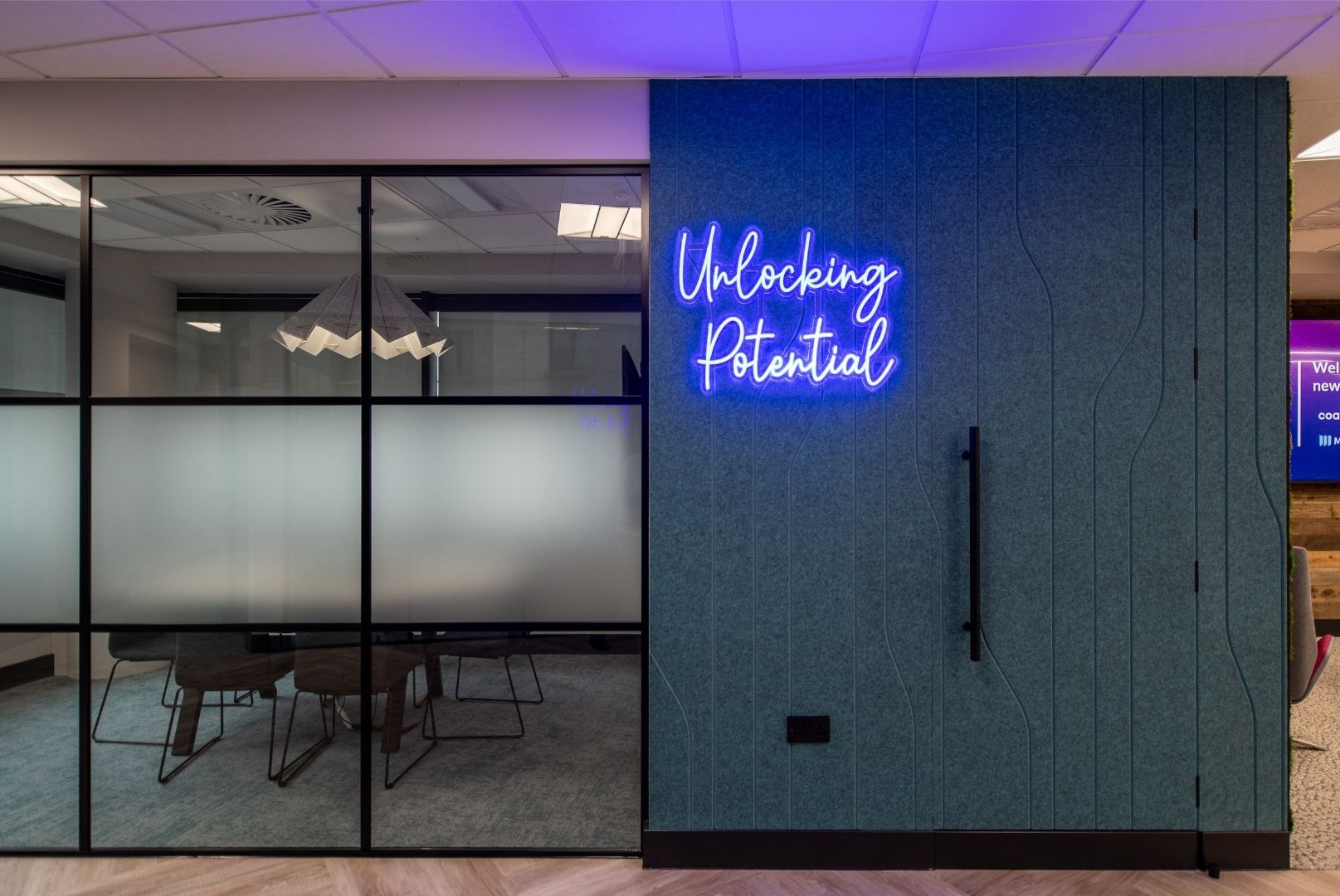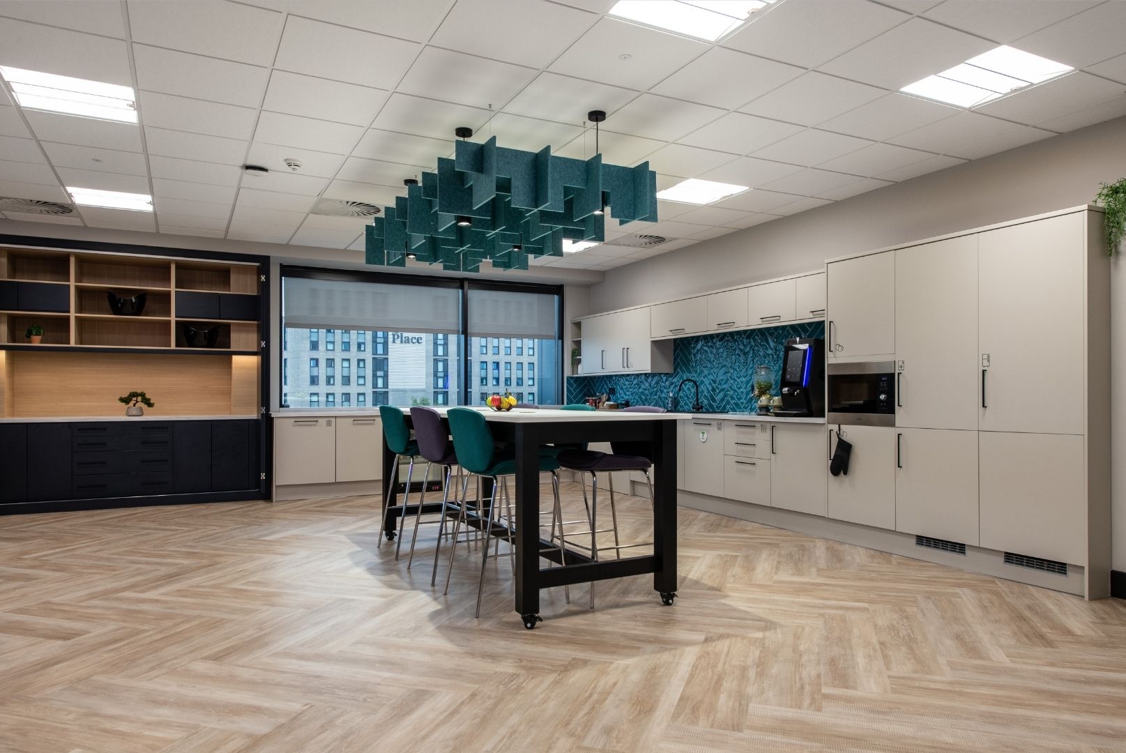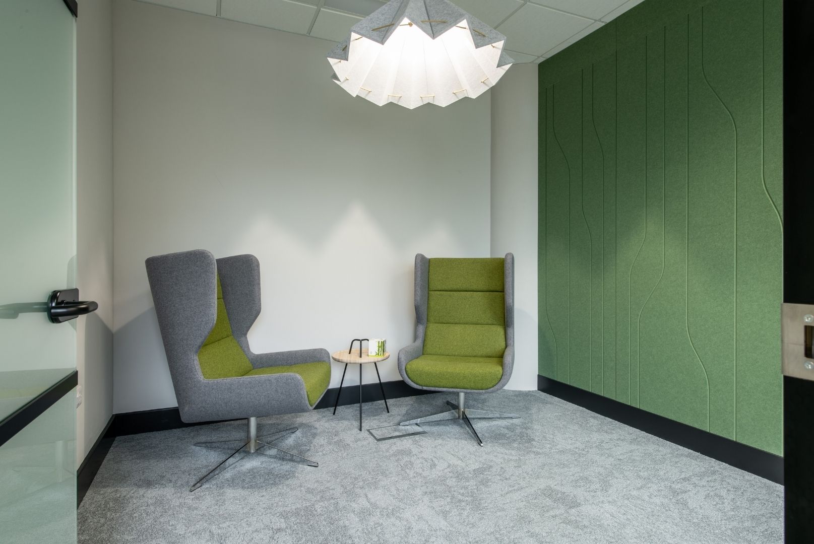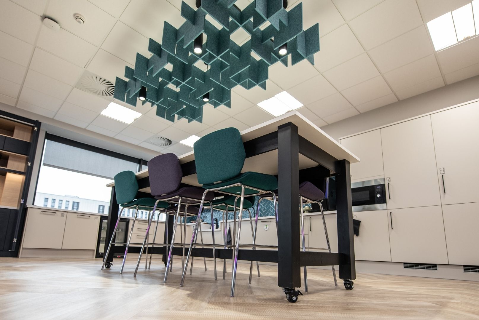 The completed scheme showcases the power of combining different acoustic elements to achieve both design intention and functional comfort. By layering wall panels, rafts and baffles, the team at Office Innovations created a workspace that feels cohesive, inviting and cleverly detailed. The result is a space that supports focus, collaboration and day-to-day comfort with ease.