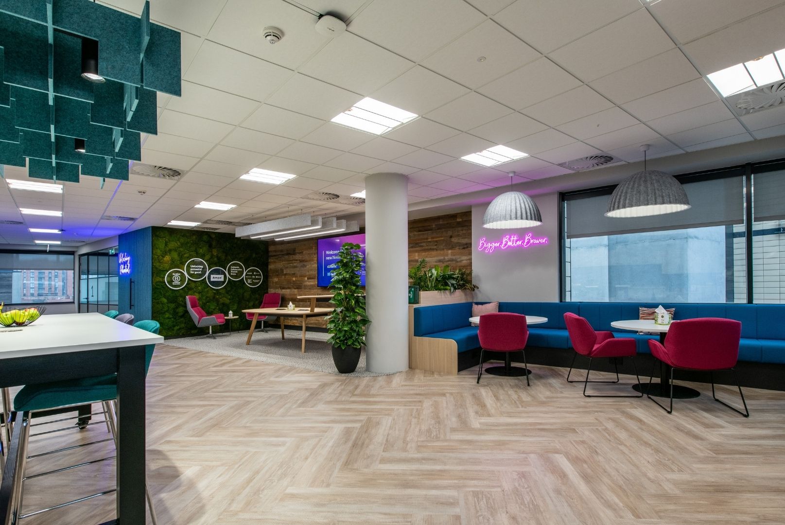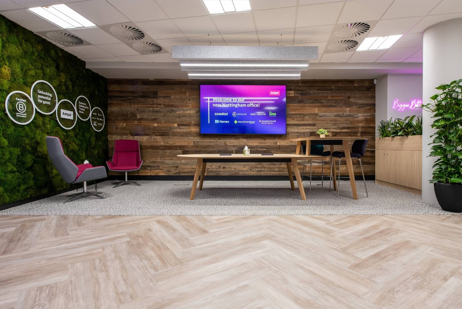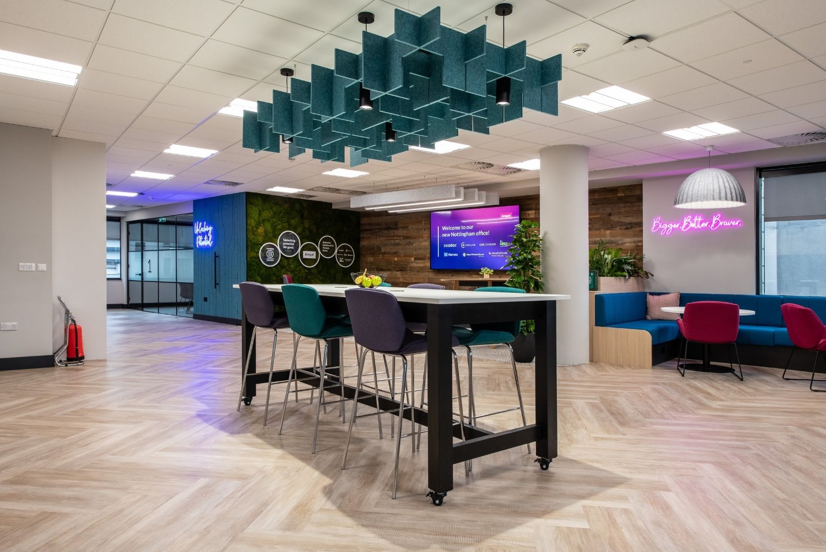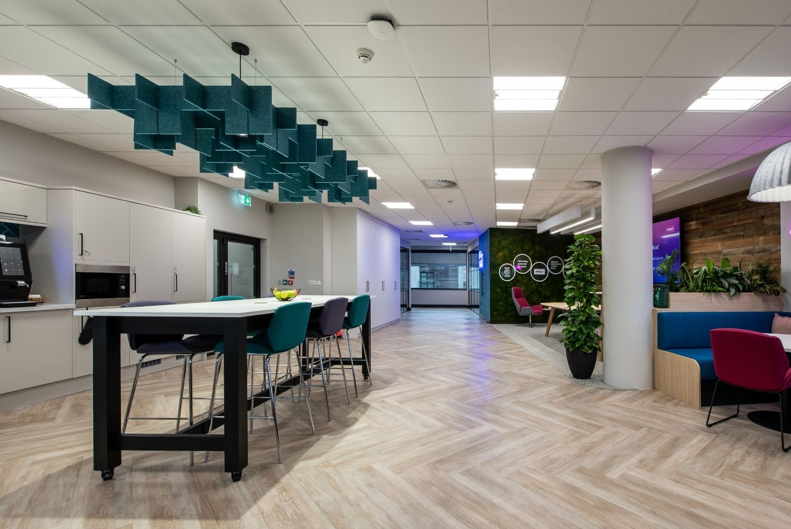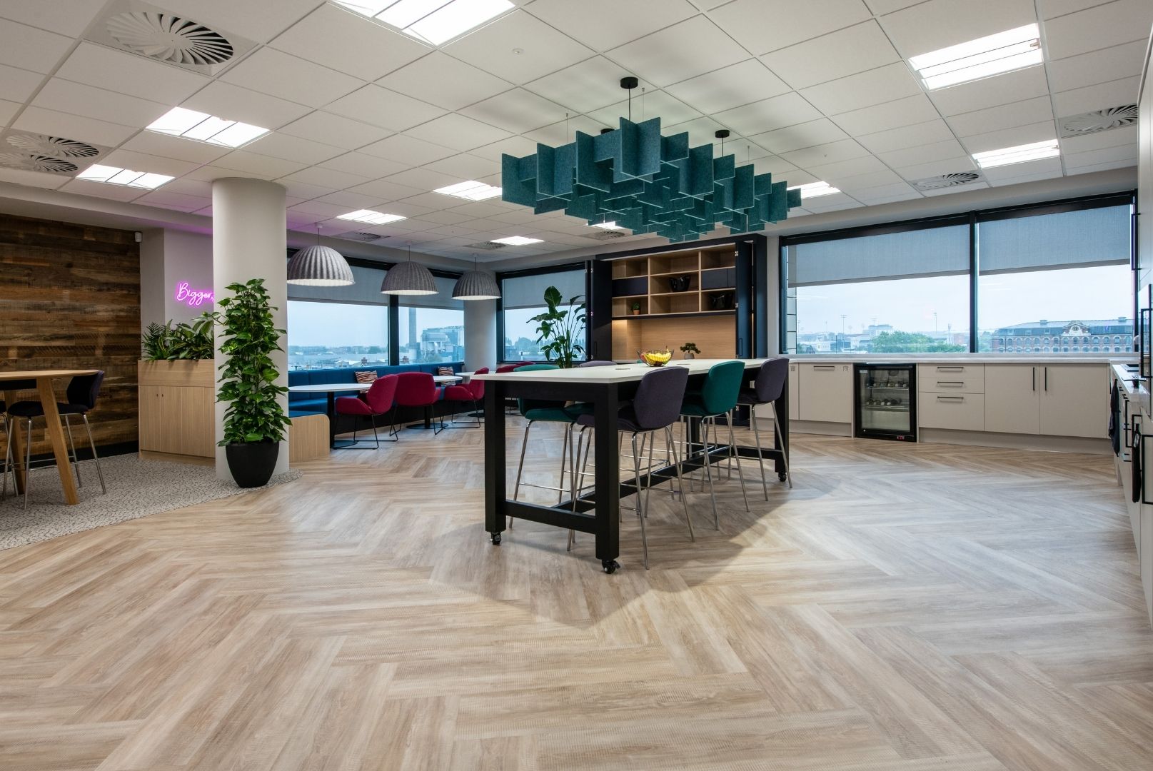 The completed scheme showcases the power of combining different acoustic elements to achieve both design intention and functional comfort. By layering wall panels, rafts and baffles, the team at Office Innovations created a workspace that feels cohesive, inviting and cleverly detailed. The result is a space that supports focus, collaboration and day-to-day comfort with ease.