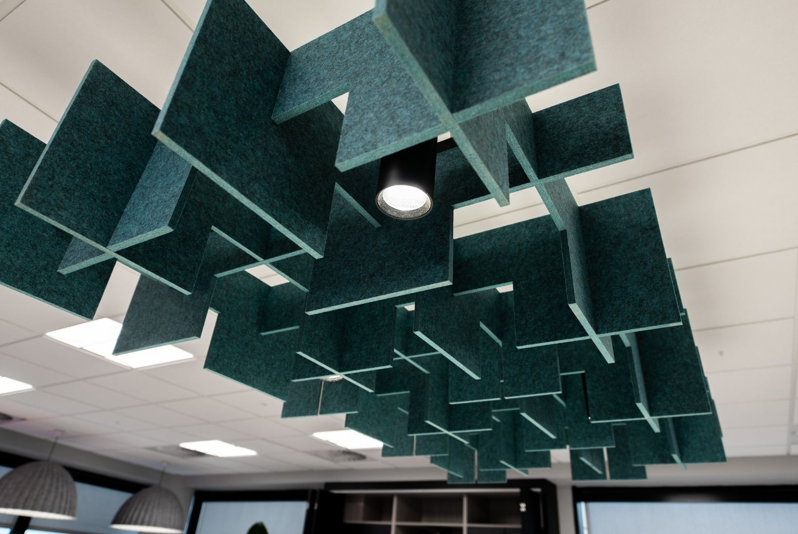 In addition, Breeze Boxy Baffles were used to further enhance acoustic performance in zones where conversations and activity levels fluctuate throughout the day. Their clean, architectural lines introduced rhythm and subtle movement to the ceiling, contributing to a calm and coherent working environment.